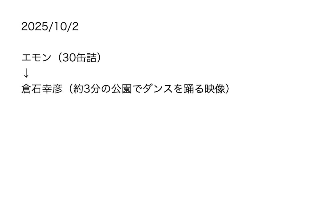 2.エモンは、倉石幸彦から30缶詰で約3分の公園でダンスを踊る映像を購入。