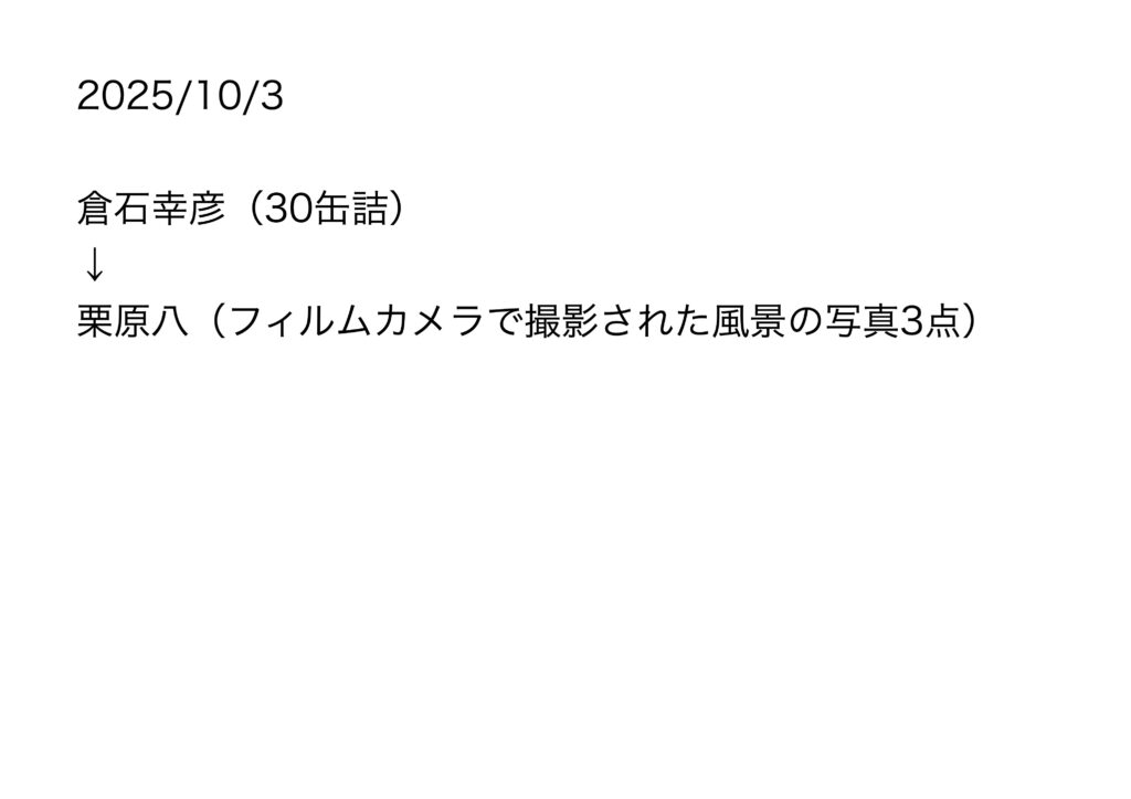 4.倉石幸彦は、栗原八から30缶詰でフィルムカメラで撮影された風景の写真3点を購入。