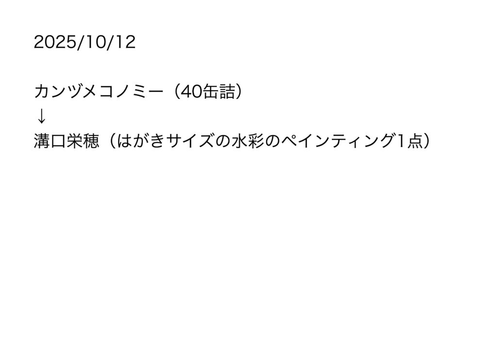 8.カンヅメコノミーは、溝口栄穗から40缶詰ではがきサイズの水彩のペインティング1点を購入。